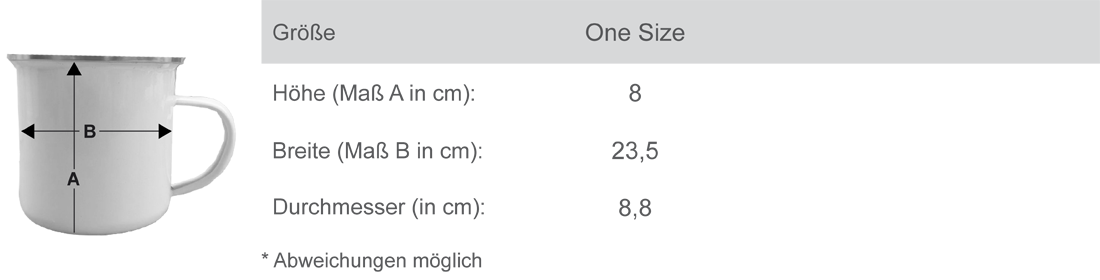 Damit dein Motiv optimal auf die Emaille Tasse passt, solltest du die Maße der Tasse kennen. Hier findest du alle wichtigen Größenangaben übersichtlich zusammengefasst.